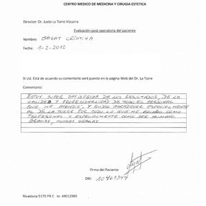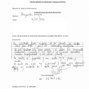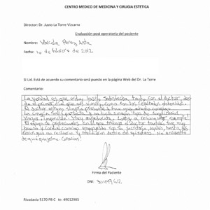 Gracias al Dr. que me asesoró bien, que me trató con cariño y paciencia. Es un profesional