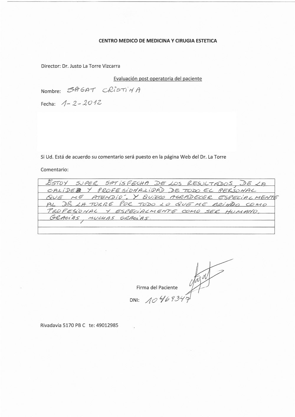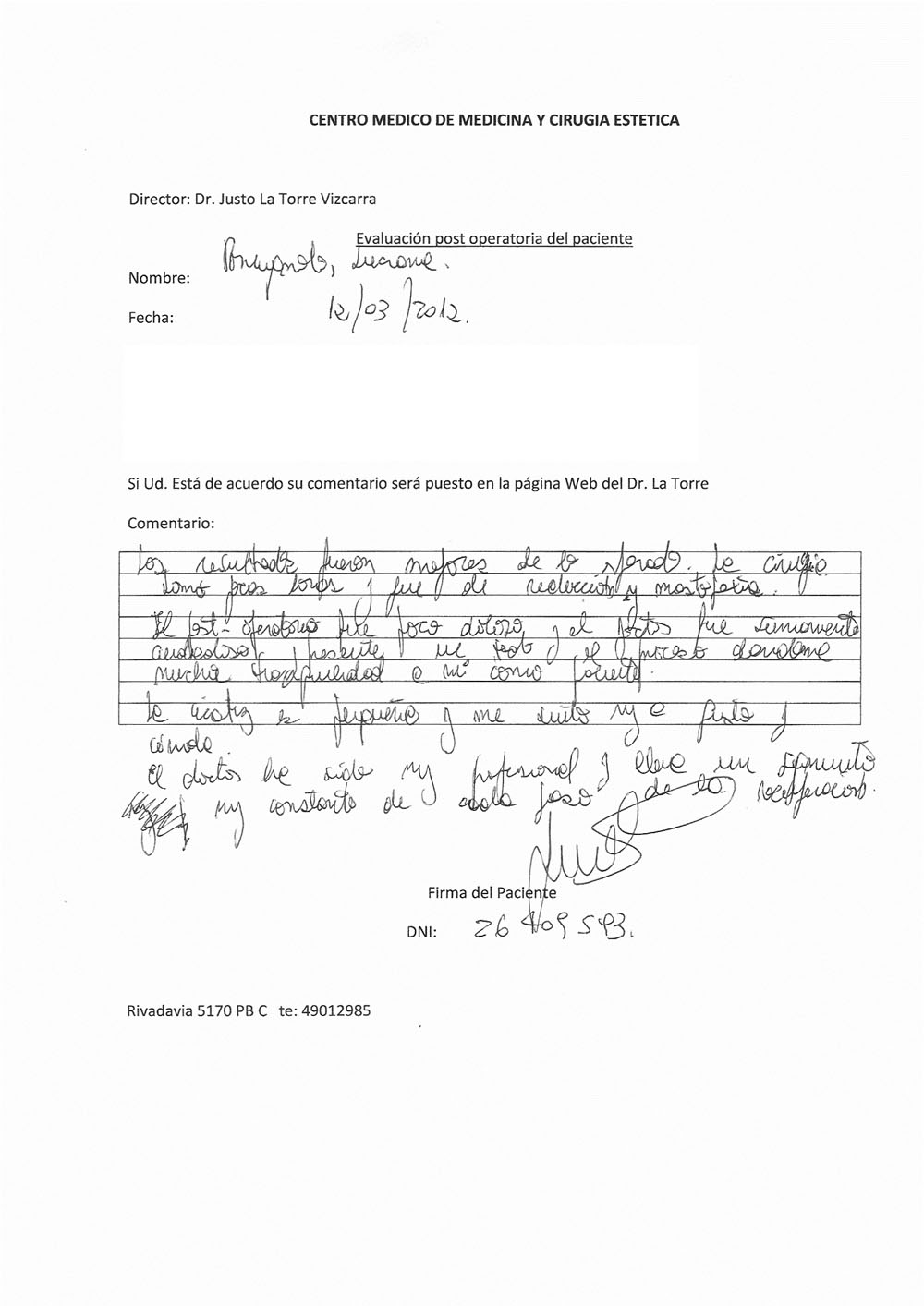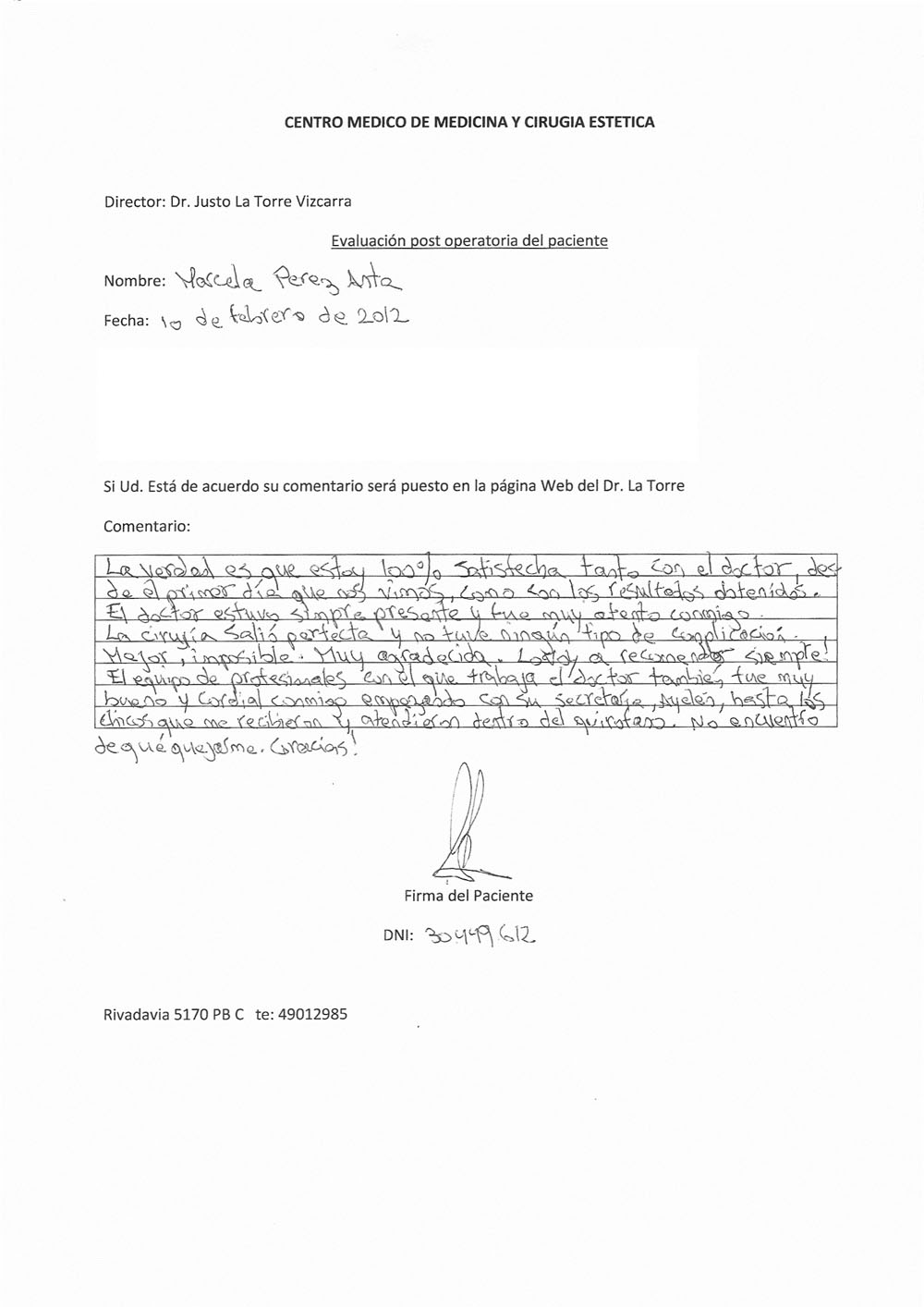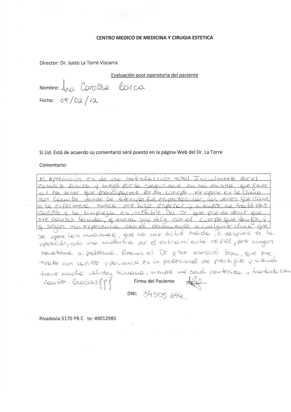 en mi misma que gané al no tener que preocuparme por mi cuerpo. Me operó en la Clínica San Camilo donde